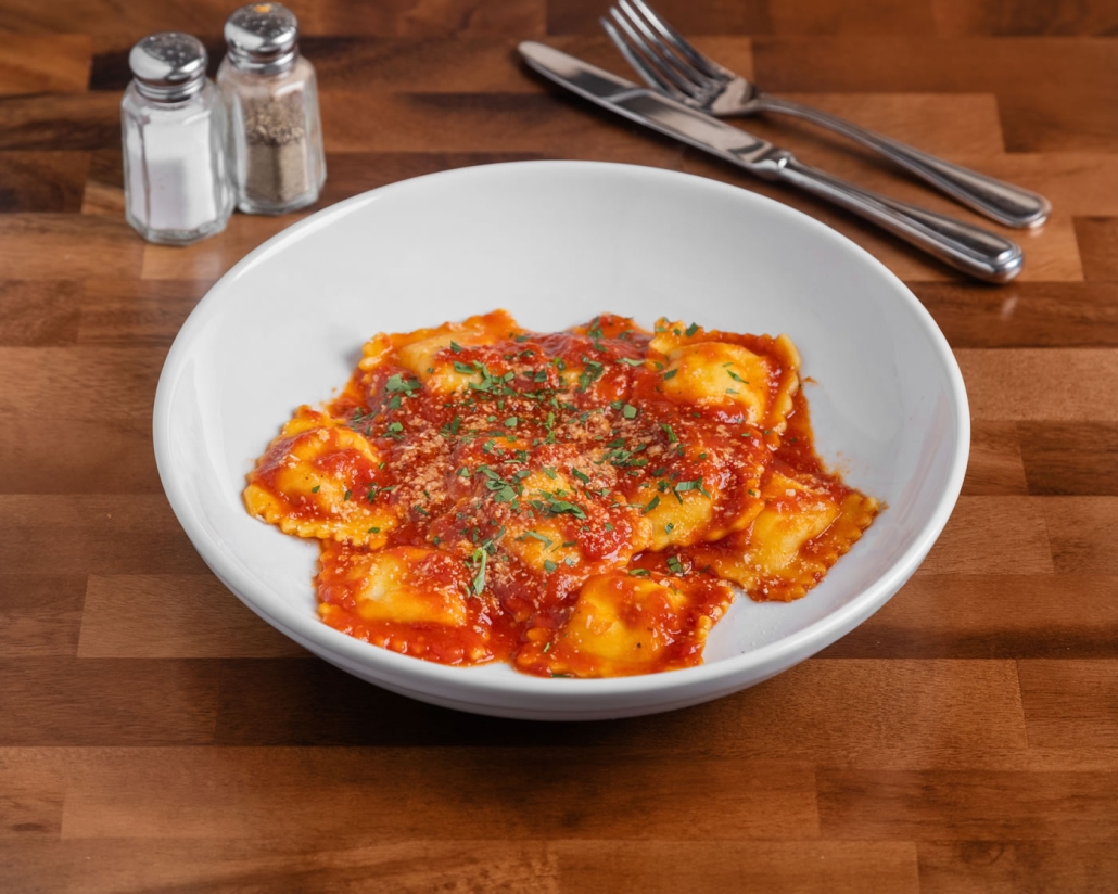 classic cheese ravioli, homemade marinara