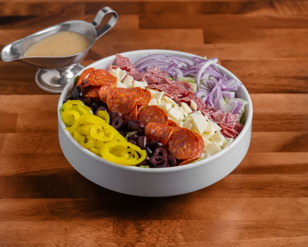romaine, salami, pepperoni, olives, red onion, banana peppers, provolone cheese