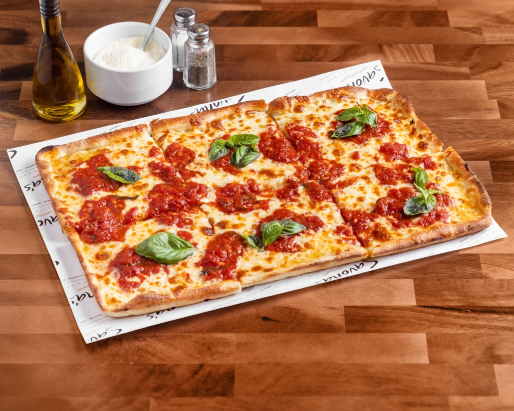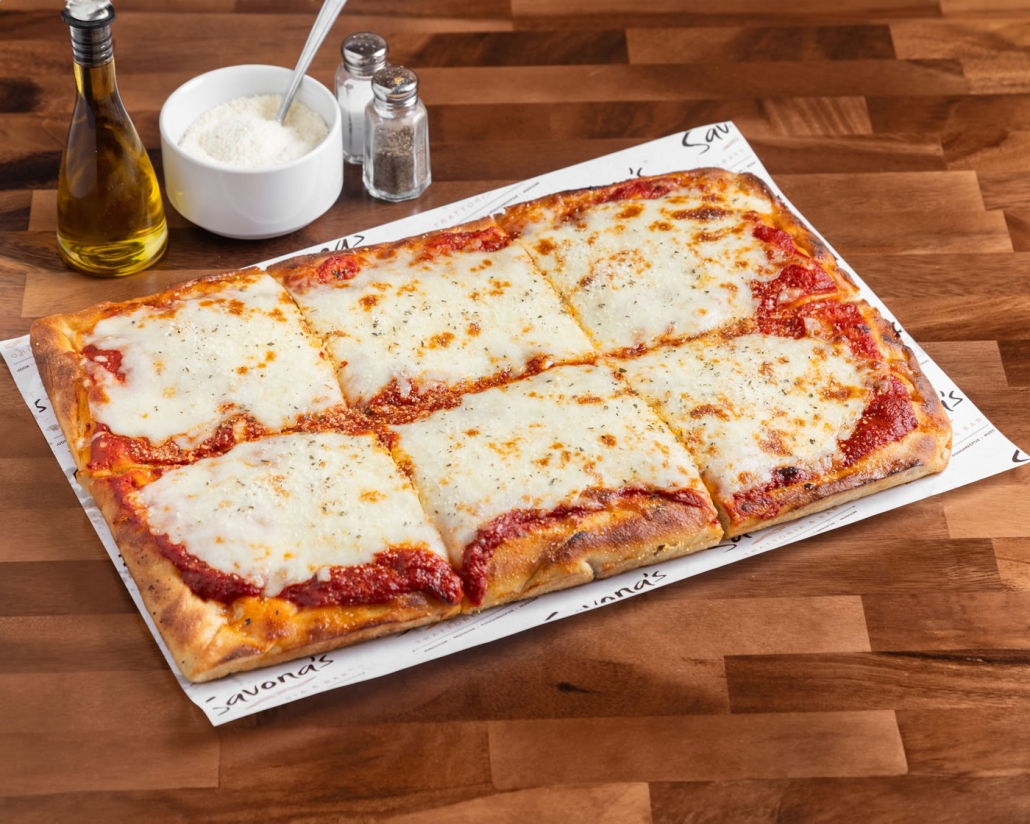 thick square pizza, mozzarella, marinara