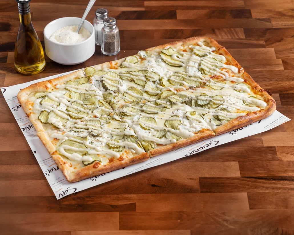 ranch dressing, ricotta base, mozzarella, dill pickles
