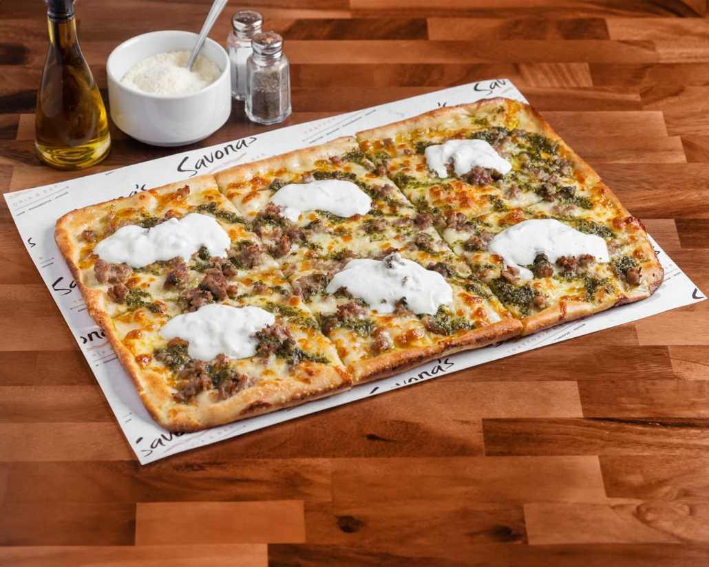 crumbled sweet italian sausage, homemade pesto, mozzarella, burrata cheese