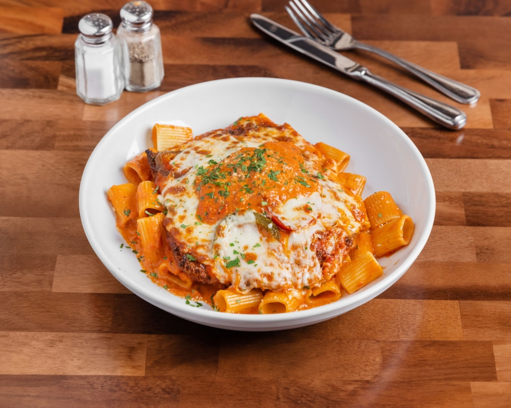 EGGPLANT ROLLATINI OVER PENNE | $19